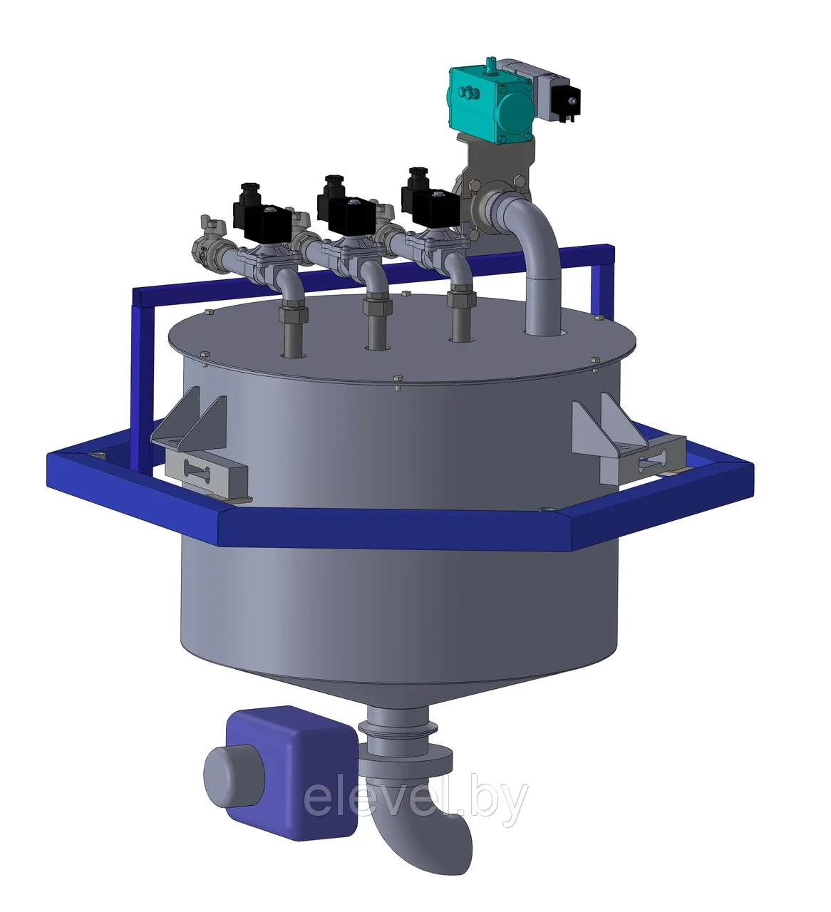Дозатор предназначен для последовательного дозирования компонентов в загрузочный бункер с последующим сливом.