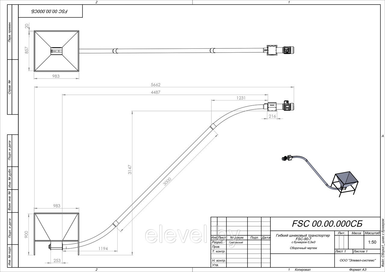 Спиральные транспортеры (конвейеры) могут использоваться для транспортировки порошкообразного, мелкозернистого и гранулированного сыпучего продукта. Конструкция гибкого шнека включает в себя загрузочный модуль, корпус с гибкой подающей спиралью, разгрузочный модуль и приводную станцию с электродвигателем и редуктором. По желанию заказчика гибкий шнек может быть укомплектован расходным бункером в зоне загрузки или специальным патрубком в зоне выгрузки.