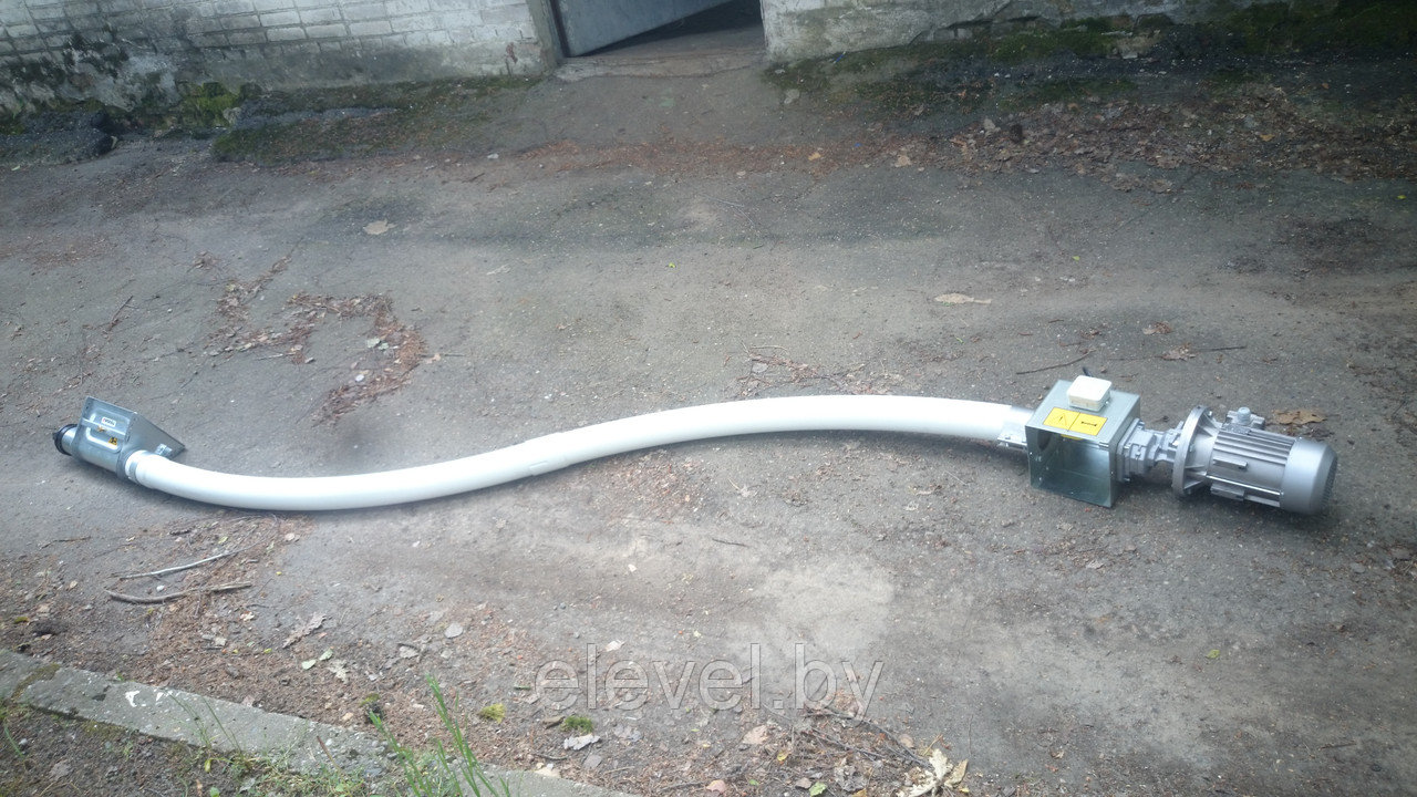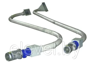 Спиральные транспортеры (конвейеры) могут использоваться для транспортировки порошкообразного, мелкозернистого и гранулированного сыпучего продукта. Конструкция гибкого шнека включает в себя загрузочный модуль, корпус с гибкой подающей спиралью, разгрузочный модуль и приводную станцию с электродвигателем и редуктором. По желанию заказчика гибкий шнек может быть укомплектован расходным бункером в зоне загрузки или специальным патрубком в зоне выгрузки.