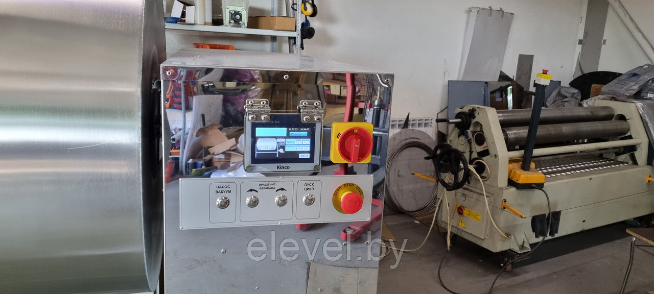 Все производственные параметры вакуумных массажёров мяса задаются при помощи пульта управления, где так же отображается остаток времени до завершения работы. Можно задать направление вращения барабана, степень вакуума и общее время массажа.