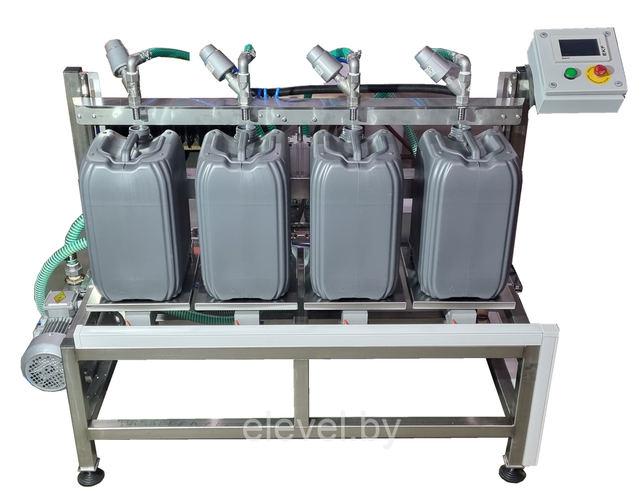 Полуавтомат розлива жидкостей ПРЖ-20-4 предназначен для розлива, дозирования ПО ВЕСУ!!! одновременно в четыре емкости (канистры) таких продуктов как вода, масло, сусло, гели, моющие средства и других веществ.