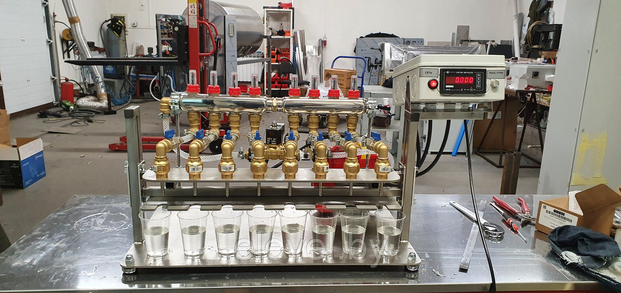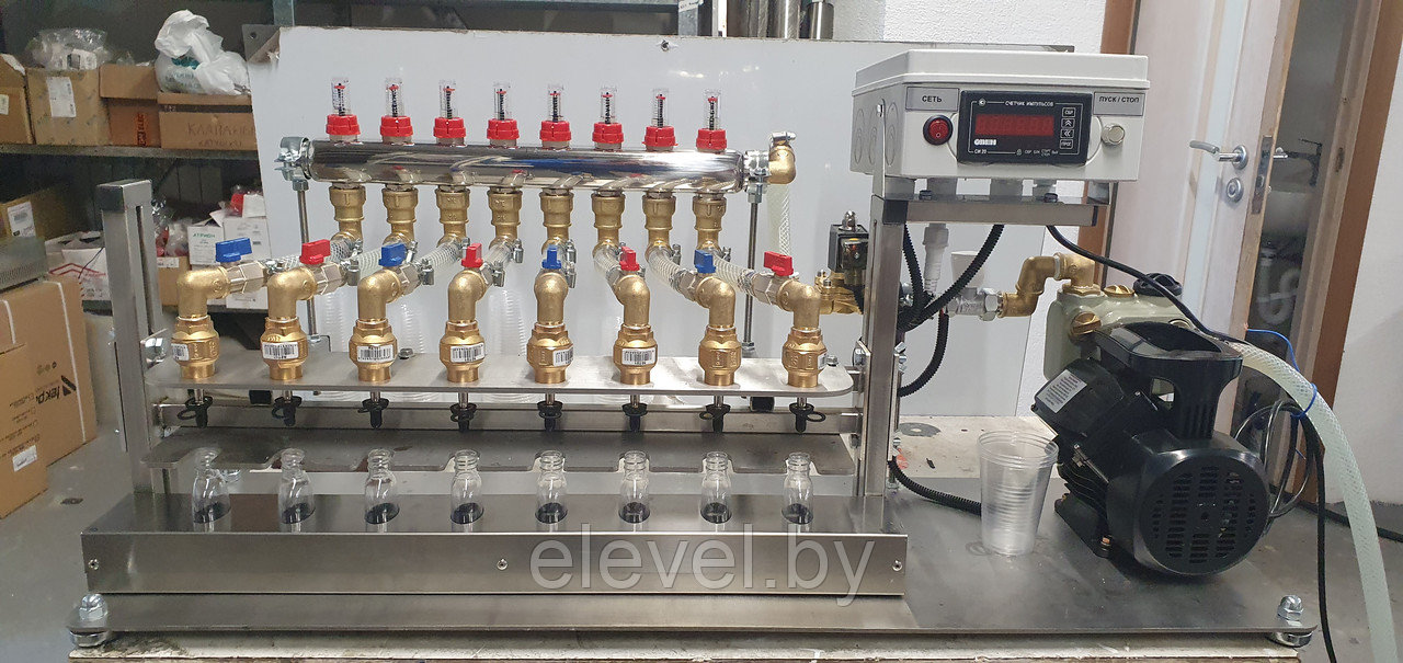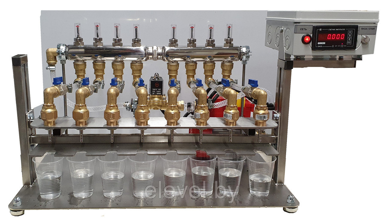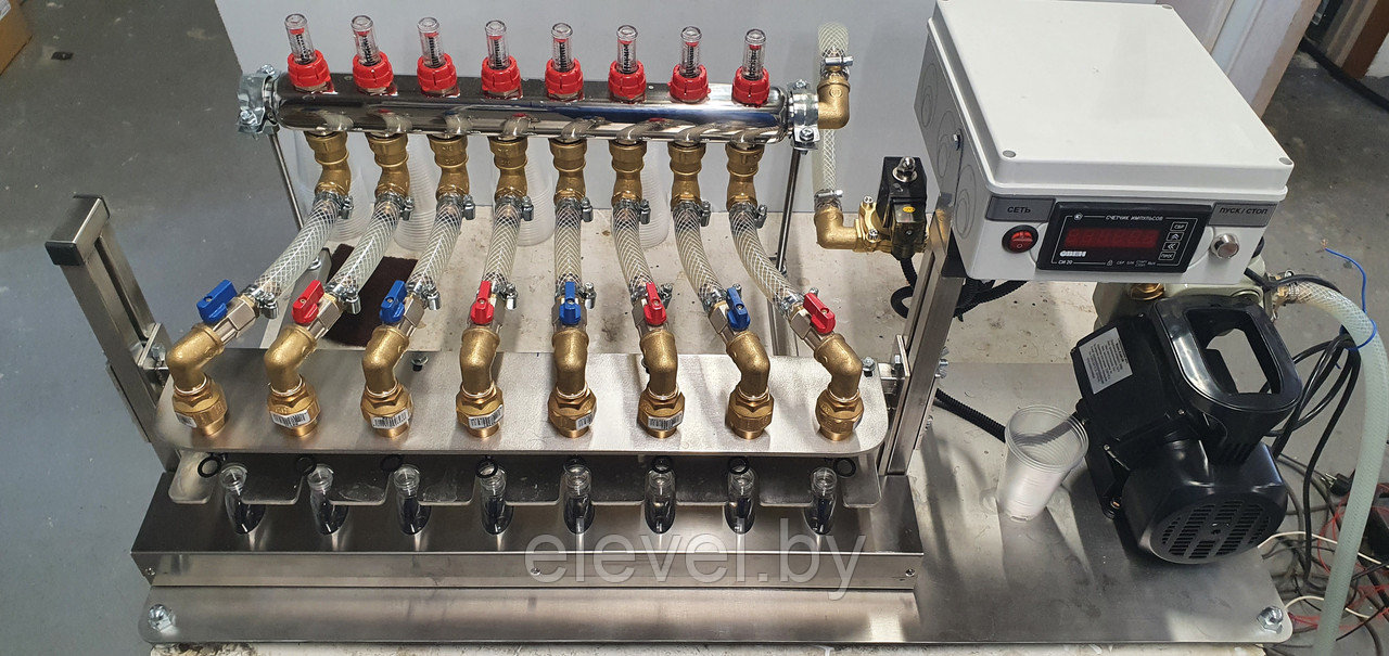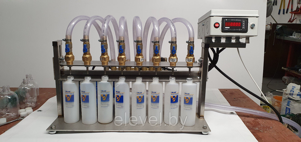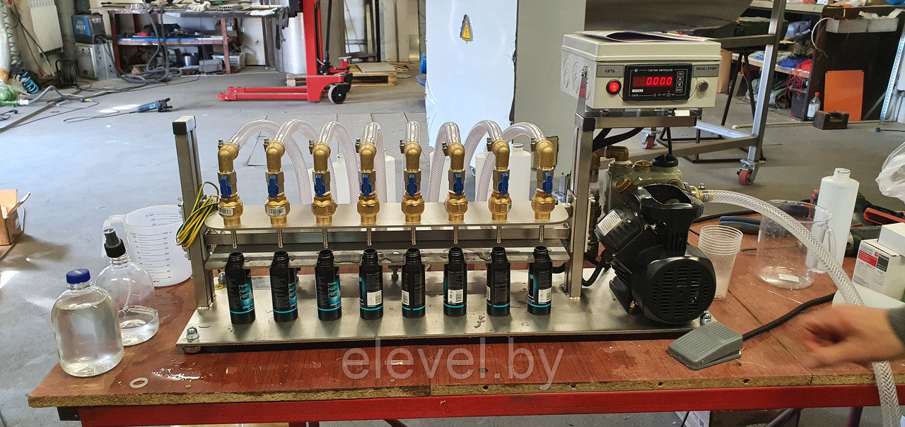 одновременного розлива жидких компонентов в 8 (восемь) пластиковых флаконов емкостью от 50мл. до 0,5 литра.