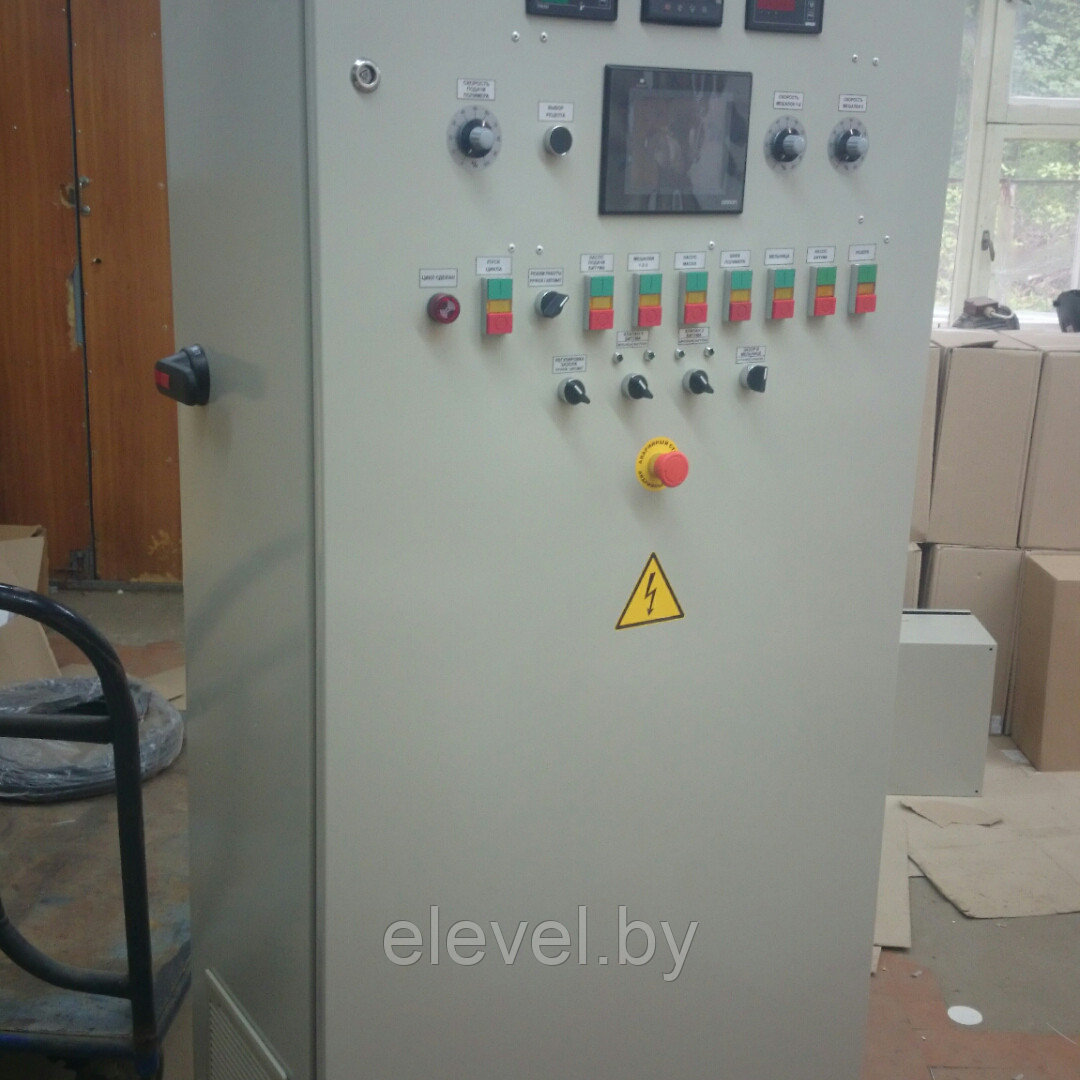 Предназначен для управления установкой модификации битума. Управление гомогенизатором, насосами, дозатором полимеров по программе контроллера, задание рецептуры с панели оператора.