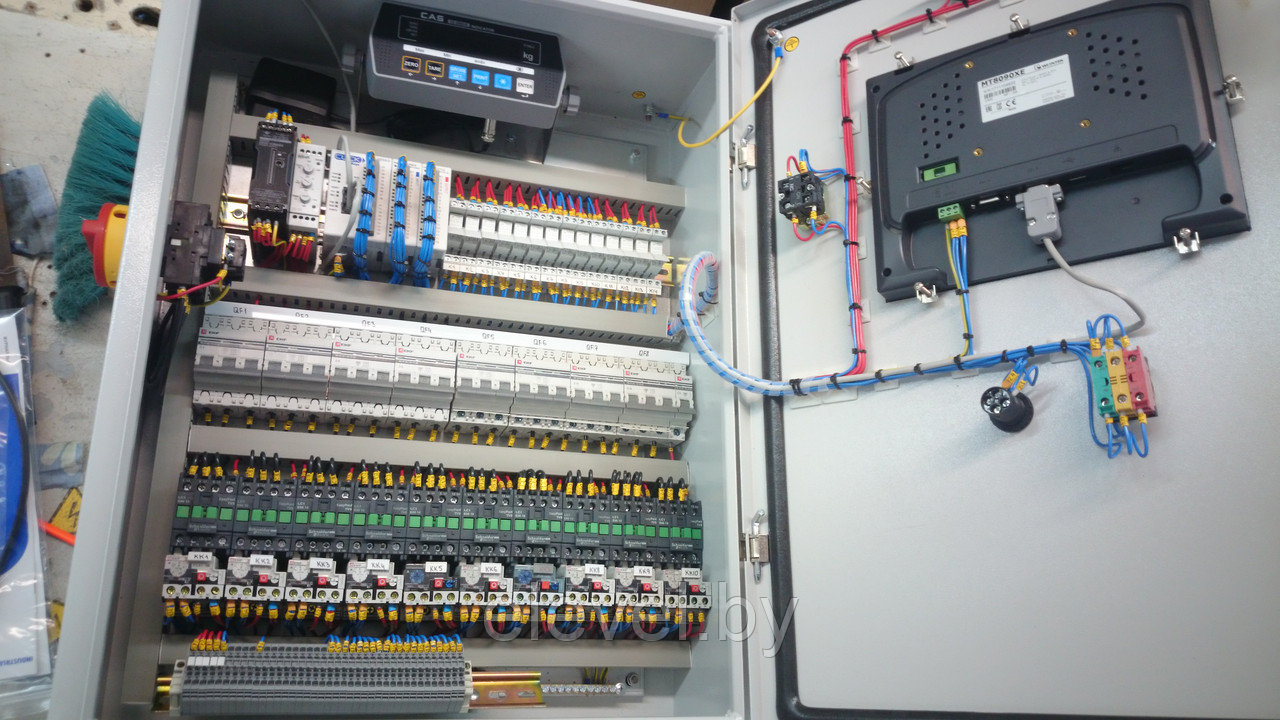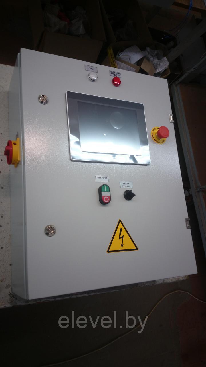 Предназначен для управления установкой приготовления раствора коагулянта и флокулянта в систему очистки сточных вод. Имеет программируемый логический контроллер CLICK и панель оператора WEINTEK для управления дозированием.